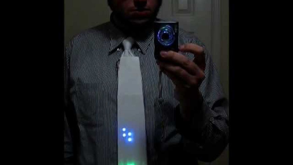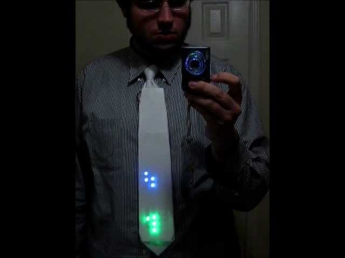 Ha valaki a videón látható nyakkendőben jelenik meg egy rendezvényen, senkinek sem lesz kétsége afelől, hogy az illető technikai analfabéta vagy inkább egy vérbeli kocka -e. A nyakkendőt egyébként készítője állítólag alig 4 óra alatt állította össze 80 darab RGB LED pixel és egy DigiSpark mikrokontroller segítségével.