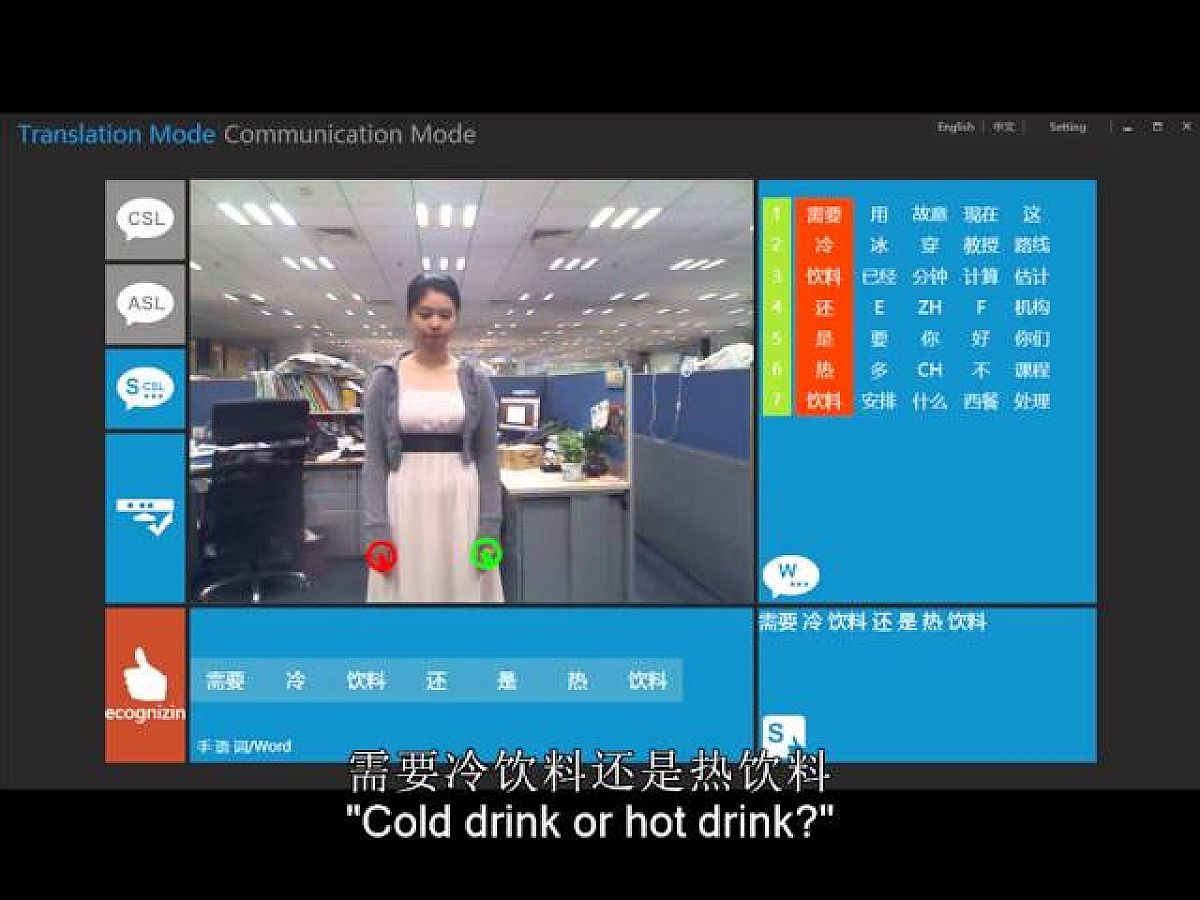 Ráadásul a program az érzékelt jeleket a Bing Translator segítségével más nyelvekre is át tudja fordítani, ezáltal közvetlenül érthetővé téve akár az idegen nyelvű jelelők által "elmondottakat" is.