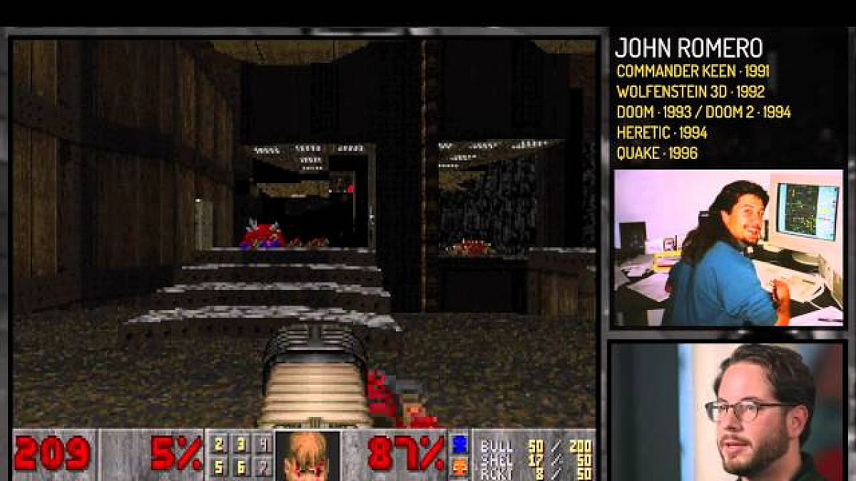 A széria a napokban felkerült új epizódjában nem mást, mint az id Software egyik alapítóját, John Romero-t láthatjuk, amint végigtolja az egykor általa tervezett Doom játék néhány pályáját - egyébként egy másik jelentős fejlesztő, a Bioshock atyjaként ismert JP LeBreton társaságában.