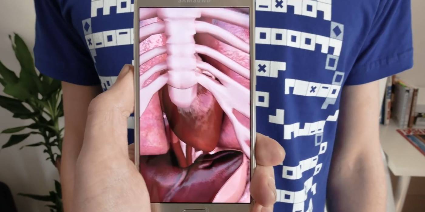 Valójában persze nem arról van szó, hogy a mobil ténylegesen képes a bőrön átlátva az ember szerveit bemutatni, hanem mindössze a kiterjesztett valóságot hívja segítségül az egyedi interaktív élmény létrehozása érdekében.