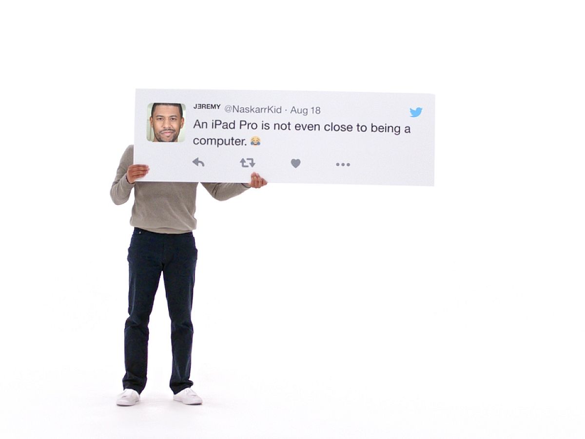 A hasonlóan "megalapozott" információkon alapuló kampányban ugyanakkor az almás vállalat ezúttal nem Mac gépeit, hanem Apple Pro tabletjét próbálja szembeállítani a PC-kkel, és azt sugallni, hogy az egyszerűen jobb utóbbiaknál. Hogy pontosan mire is, az a reklámból nem derül ki, csak az, hogy - legalábbis az Apple szerint - a két termékcsoport közül csak az ő táblagépének van érintőképernyője, csak arra lehet kézzel írni, és csak az képes a mobilnetes kommunikációra is.