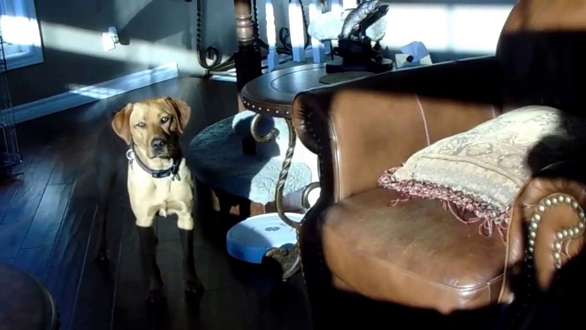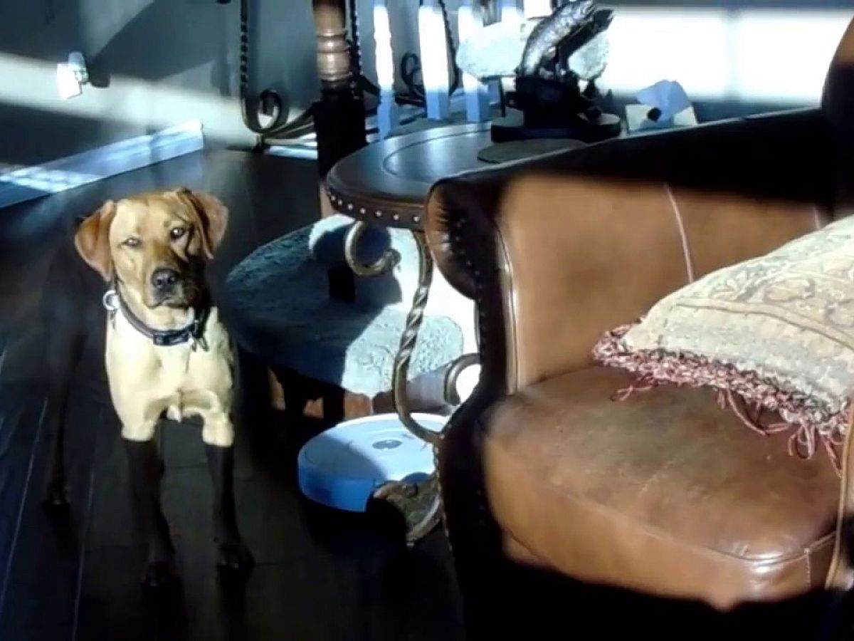 Egészen pontosan annak, hogy megakadályozza, hogy a robotok elvegyék az emberek munkáját. A felvételen a kutya ugyanis egyszerűen nem hagyja, hogy a robotporszívó végezze a dolgát, és ezen keresztül elvegye a házvezetőnő munkáját, hanem lépten-nyomon kikapcsolja azt.