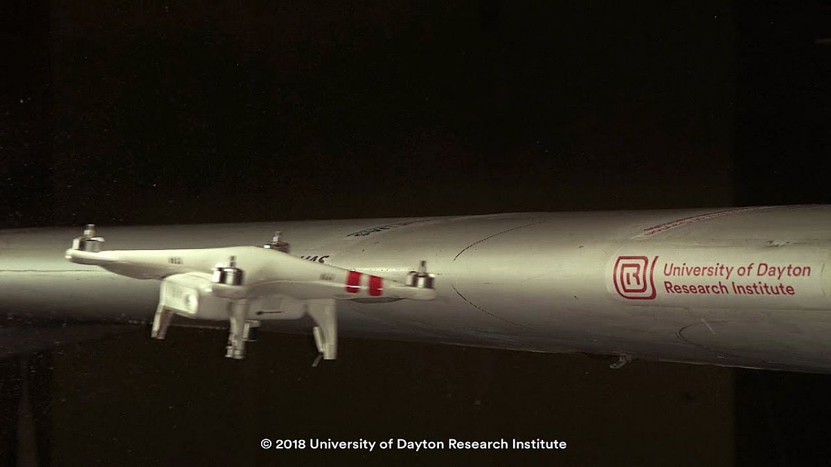 A fenti felvételeket egy amerikai kutatóintézet tette közzé, egy olyan kísérletről, amiben azt vizsgálták: milyen károkat is tud okozni egy drón, ha becsapódik a levegőben egy kisrepülőbe. Mivel a kísérletet valós körülmények között nehéz és veszélyes lenne elvégezni, a kutatók megfordították a dolgot és egy álló repülőbe lőttek egy drónt a kisrepülők tipikus haladási sebességével.