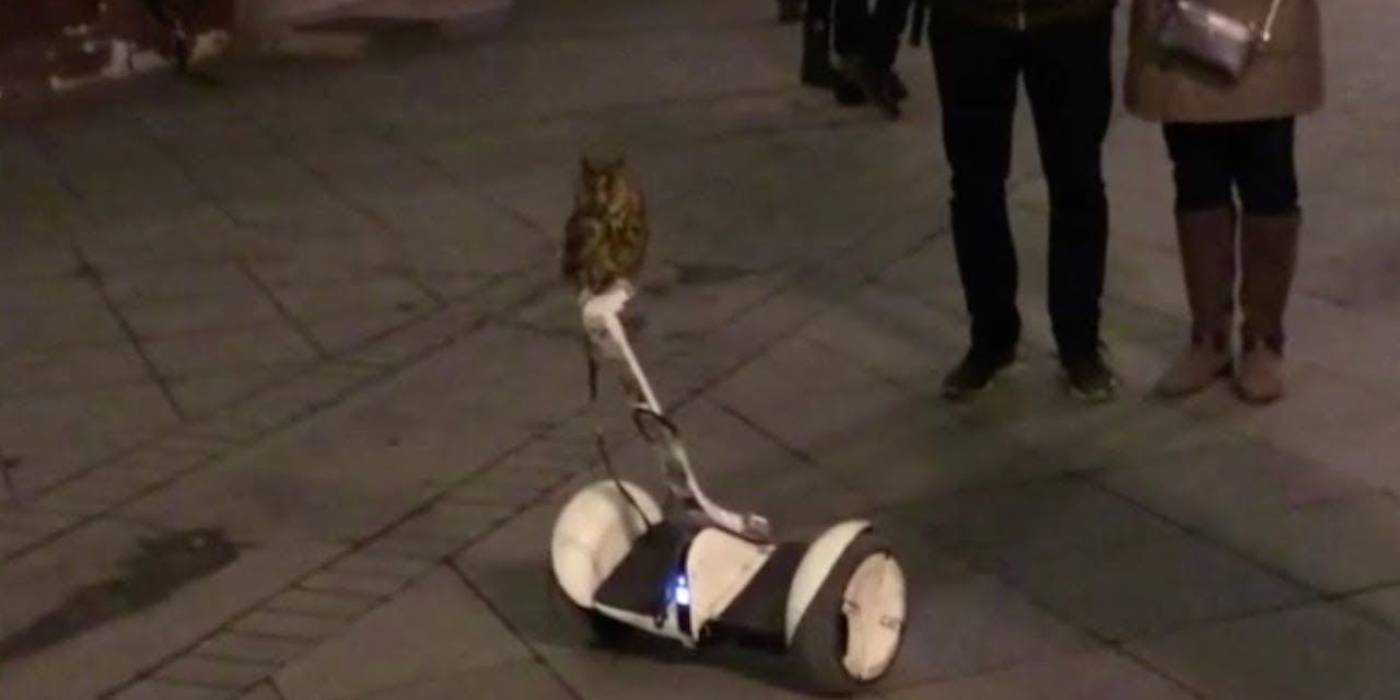 A napokban egy meglehetősen furcsa jelentet ábrázoló videó került fel a YouTube-re, amiben az látható, amint egy bagoly vezet egy Segway-t az után. A madár olyan természetesen ül az elektromos járművön, mint ha ez teljesen magától értetődő lenne, sőt, közlekedik is vele az őt körülvevő emberek között.