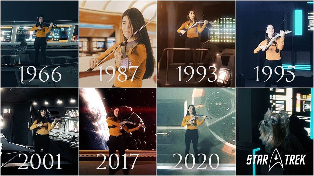 Ebben jön a rajongók segítségére a fenti videó, ami egyetlen zenei egyvelegben tekinti át az összes széria zenéit, egy csinos hegedűművész segítségével, az eredeti sorozattól egészen a Star Trek: Picard-ig.