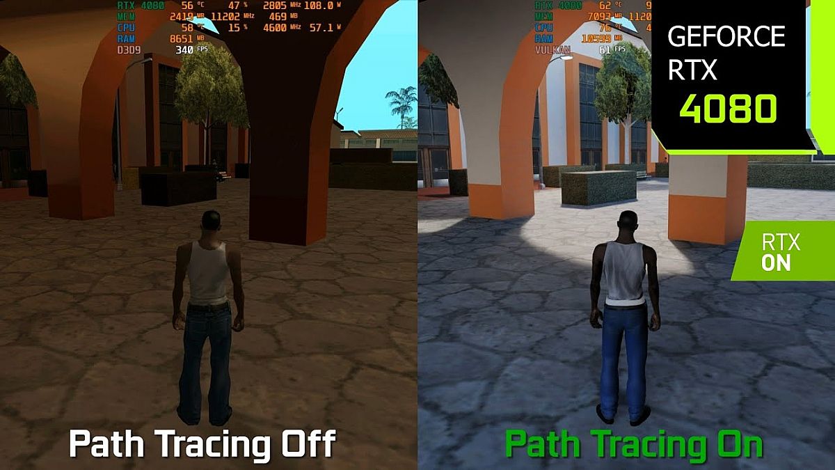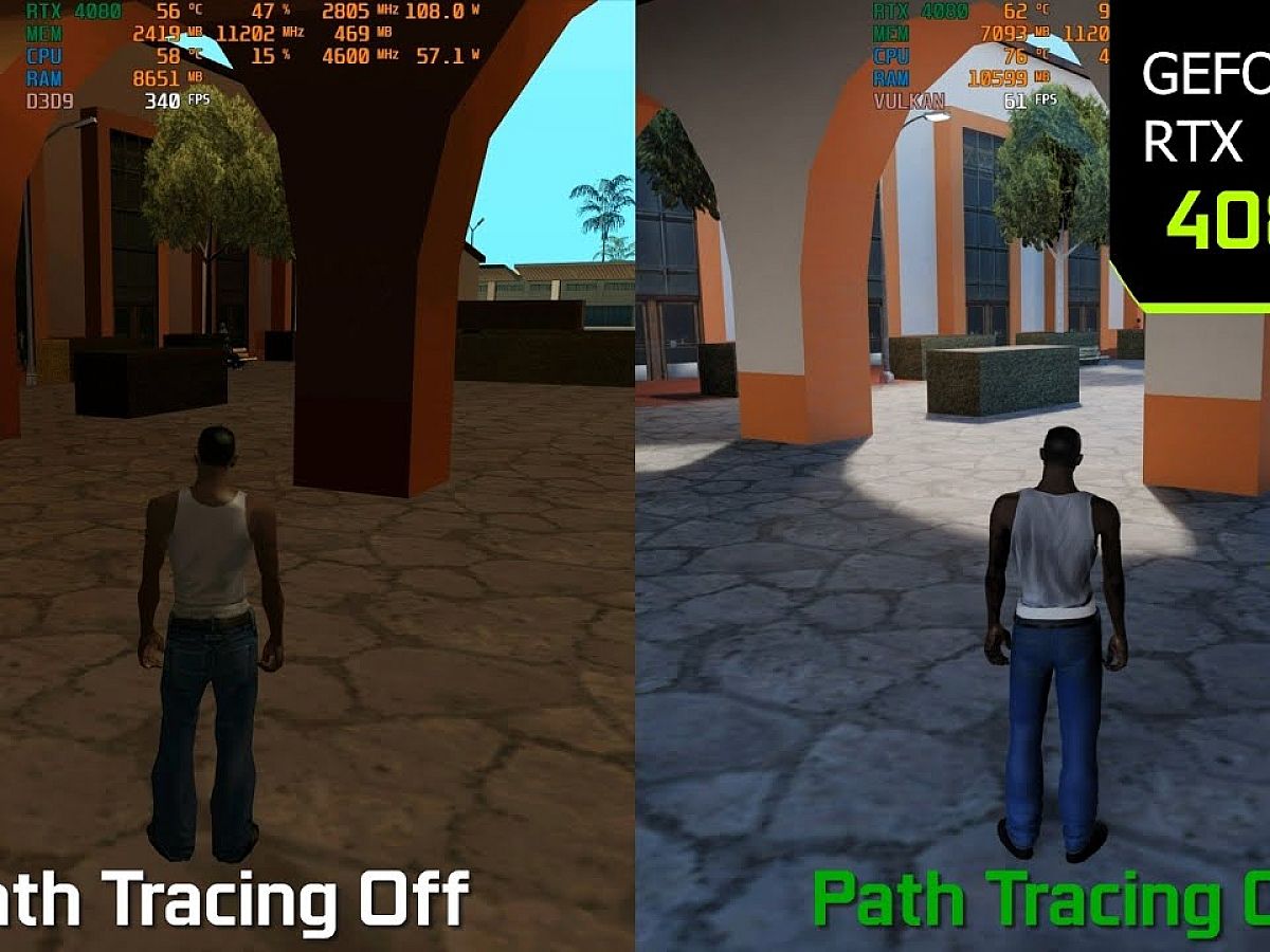 A GTA: San Andreas raytracinggel kibővített kiadása ugyanis az eddigi legmegdöbbentőbb változást hozza el az eredetihez képest. Ennek oka valószínűleg az, hogy ez a játék már nem olyan egyszerű modellekkel és textúrákkal dolgozott, amikre hiába is pakolják rá a sugárkövetést, mert az eredmény még mindig nagyon "kockás" lesz, de még nem is volt annyira modern originálban, hogy ahhoz képest a raytracing már csak keveset tudjon hozzáadni az élményhez.