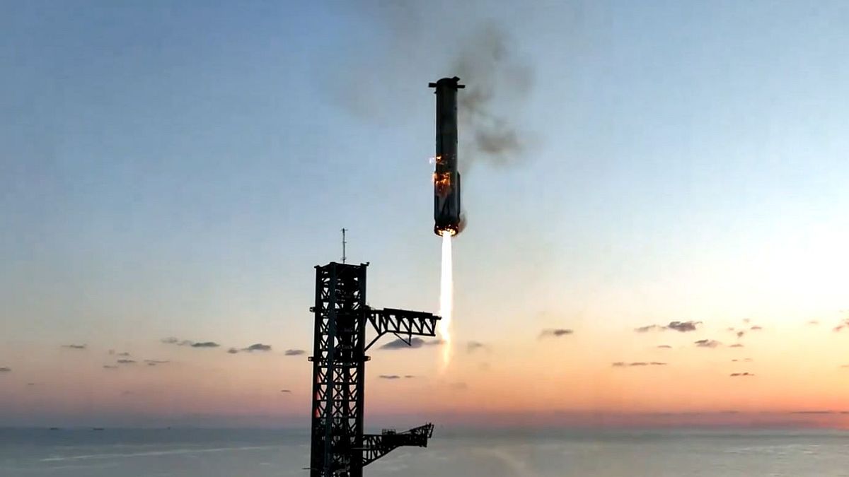 A Falcon Super Heavy így lényegében nem leszállt a földre, hanem még a földet érés előtt került megfogásra a cég által Mechazilla-nak nevezett szerkezet által. Ez gyakorlatilag egy ugyanolyan egység, mint egy hagyományos kilövőtorony, csak éppen ez a rakéta elindulása mellett annak visszatéréseben is fontos szerepet játszik.