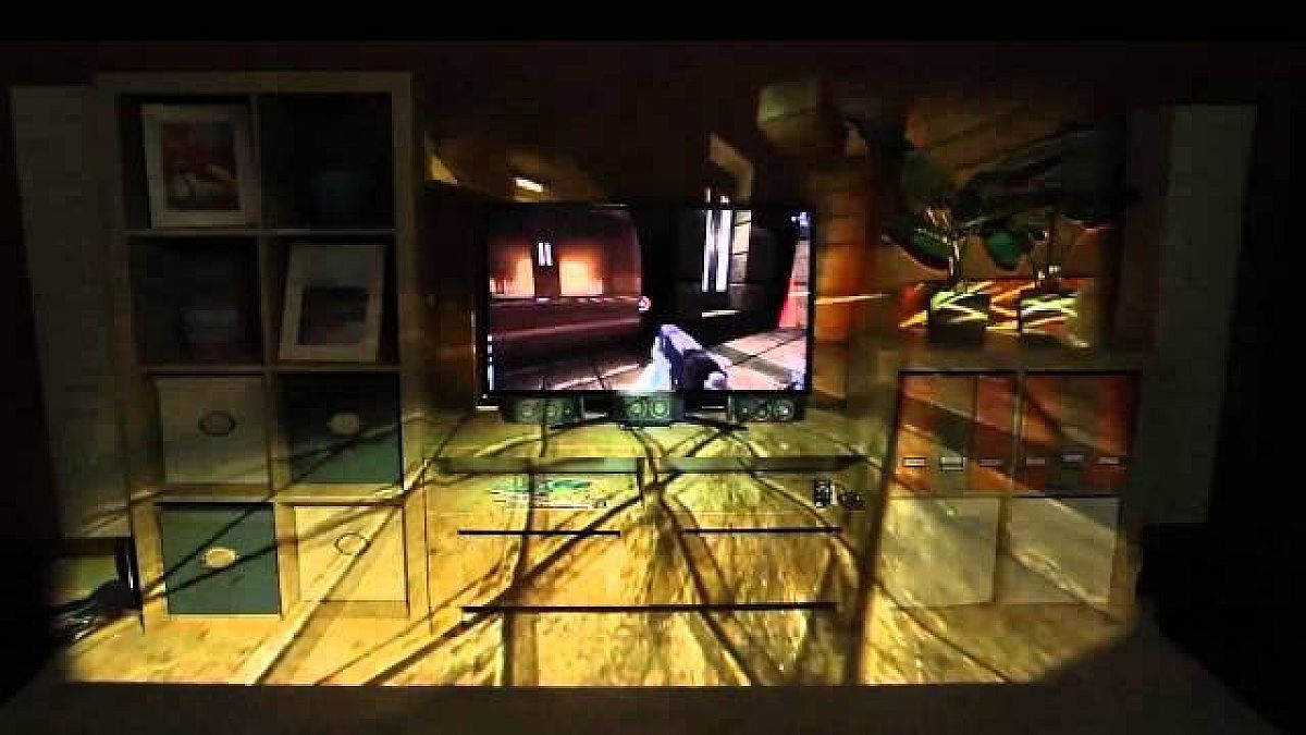 Részletes bemutatóvideó a Microsoft IllumiRoom technológiájáról, amely vélhetően kulcsfontosságú perifériává válik a következő Xbox számára.
